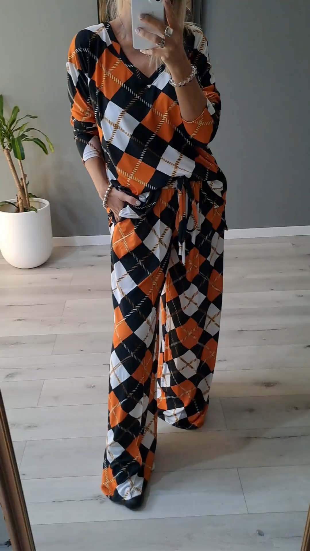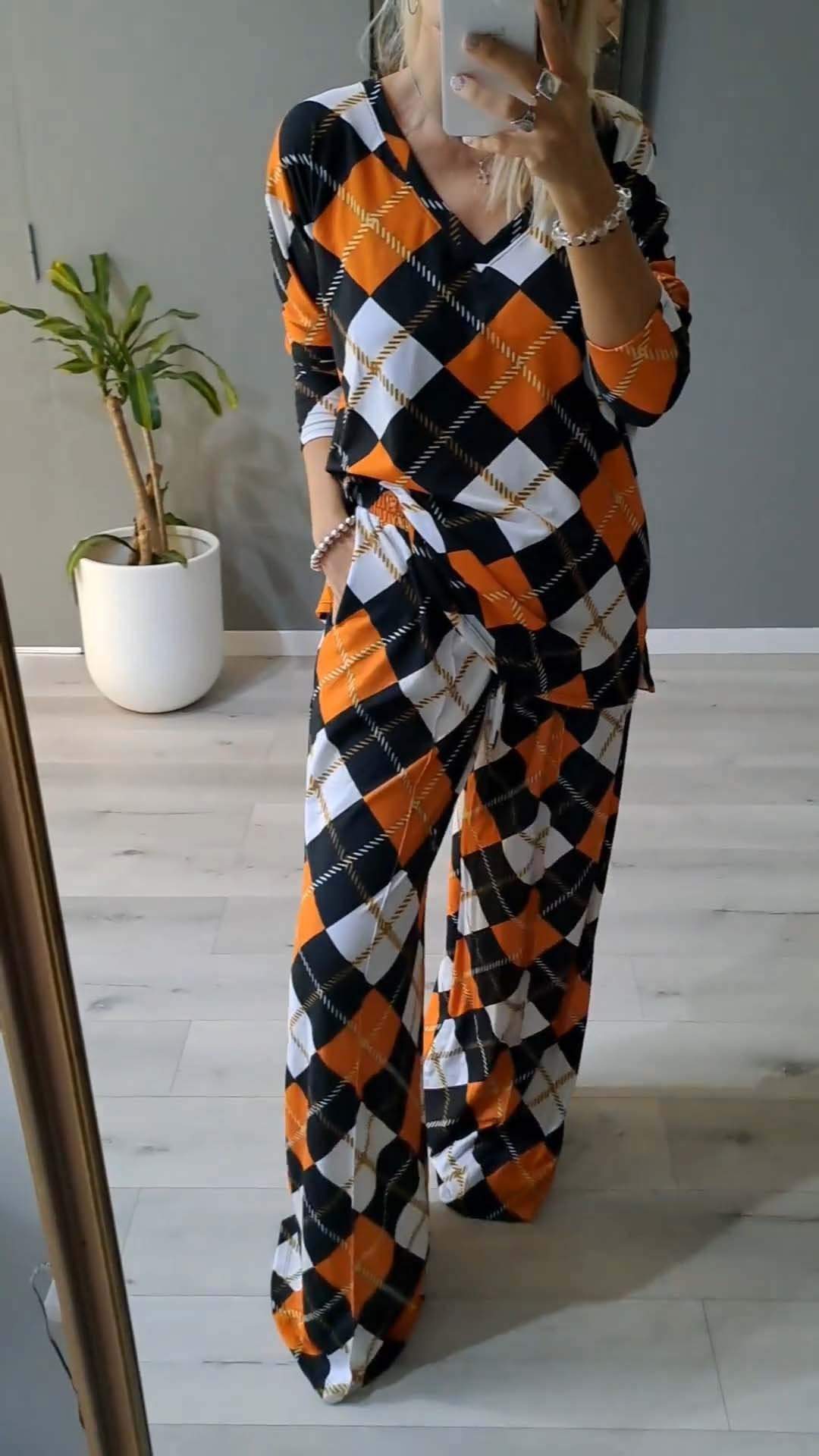 Women's Casual Plaid Print Long Sleeve Suit
