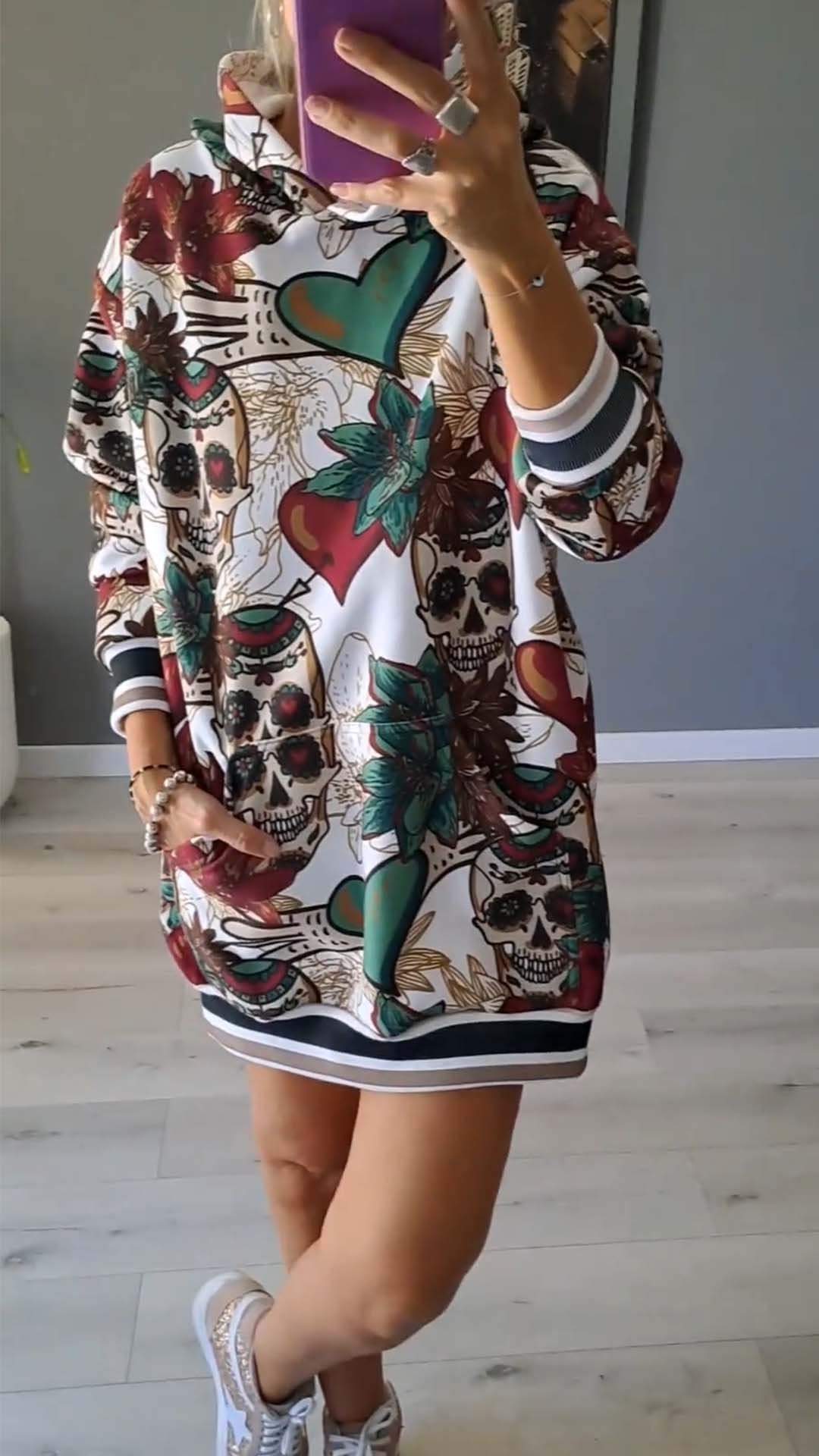 Women's Halloween Casual Skull Print Hoodie