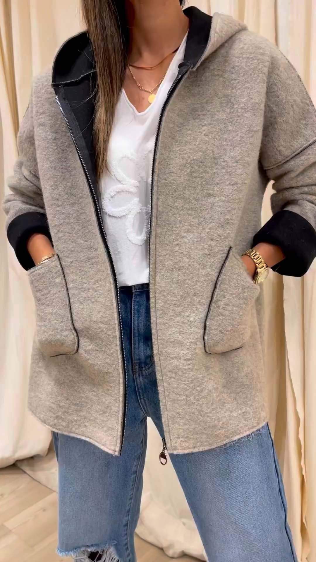 Women's Autumn Hooded Solid Color Zipper Jacket