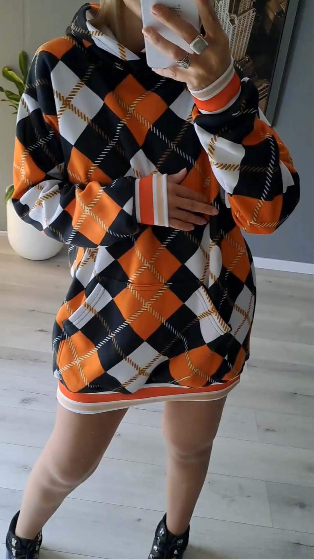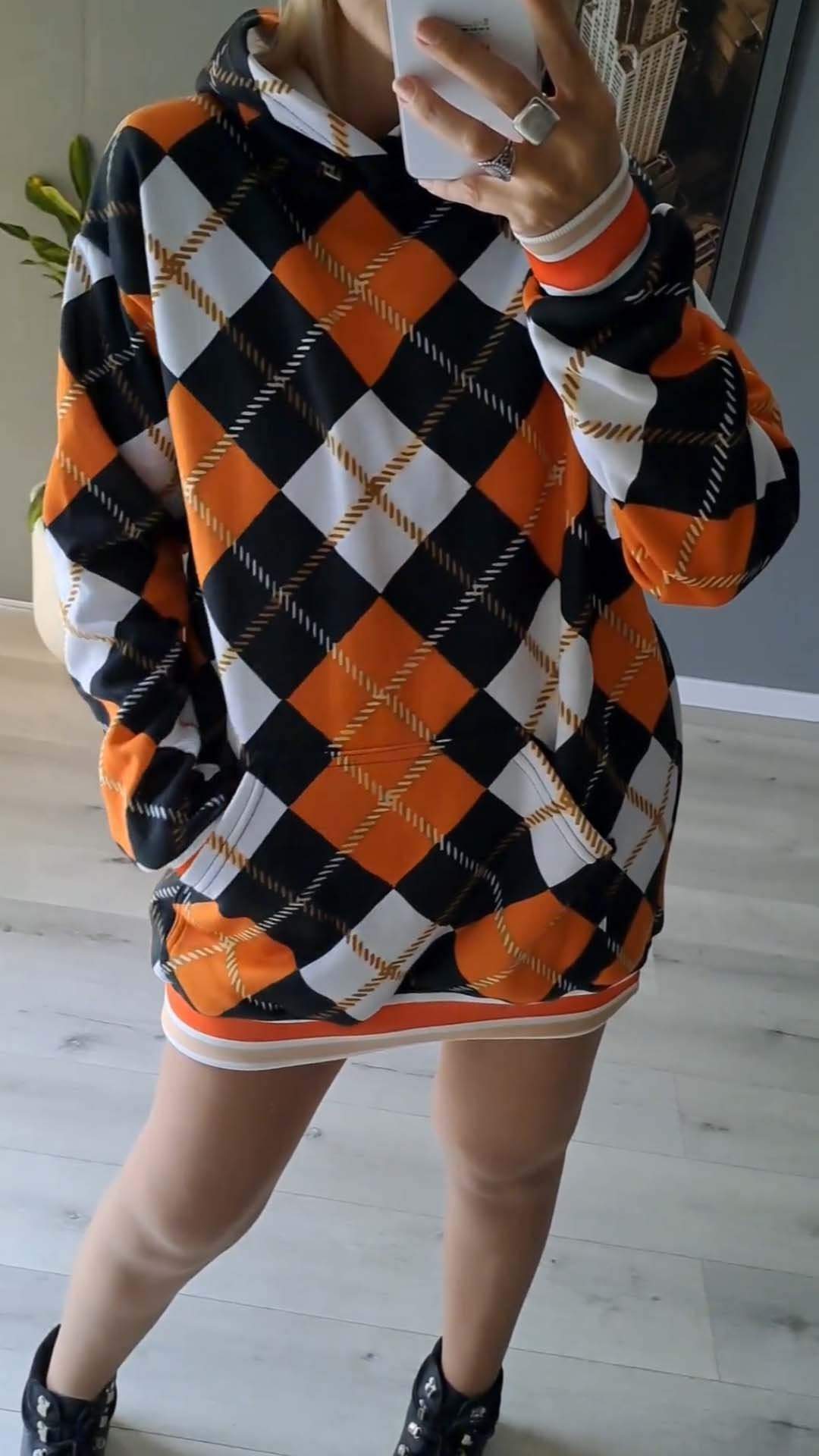 Women's Halloween Casual Plaid Print Hoodie