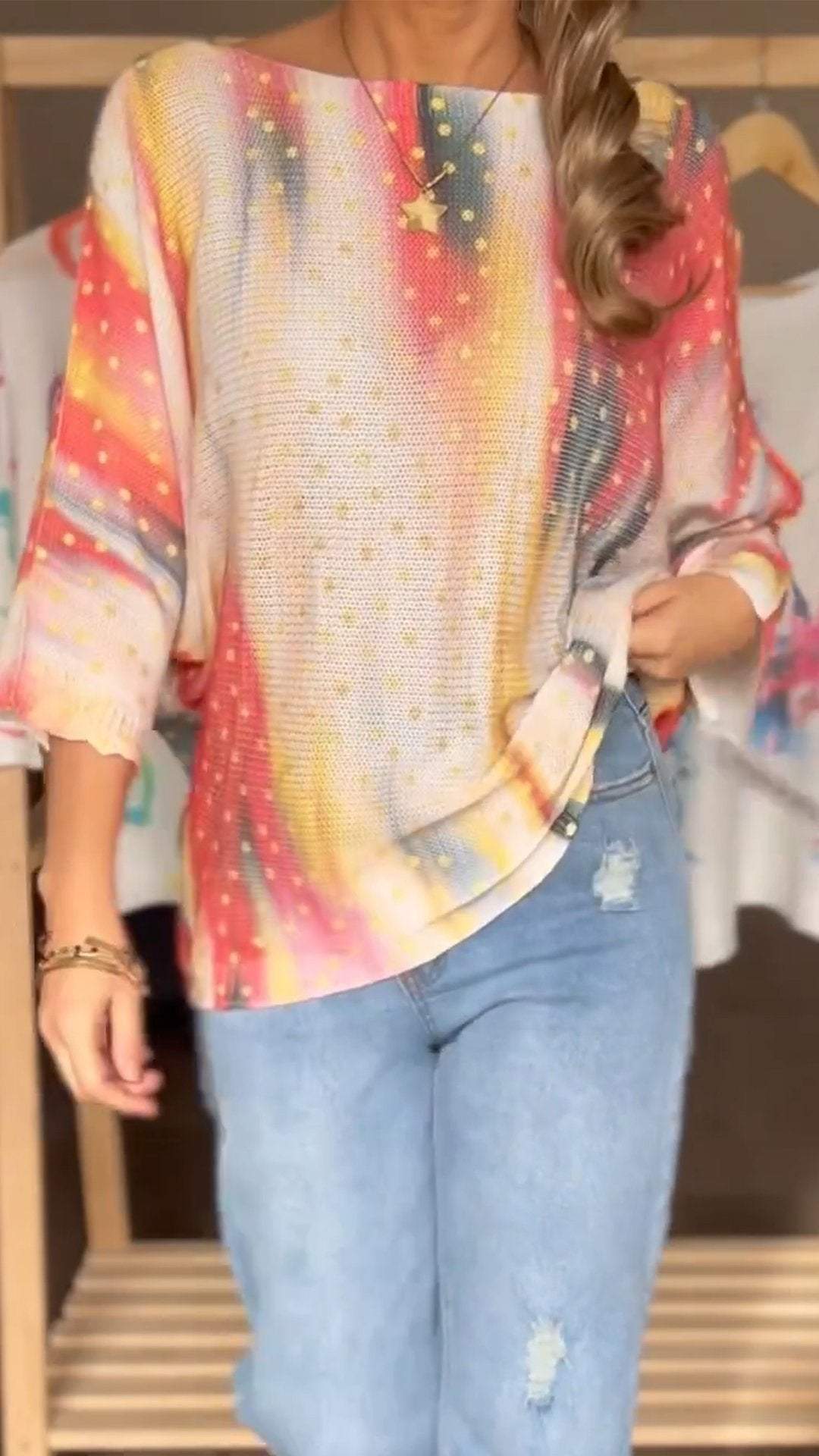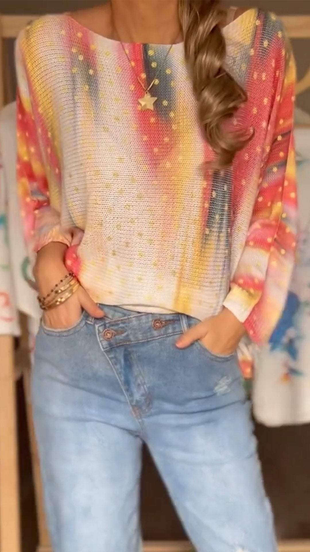 Women's Round Neck Long Sleeve Knitted Printed Top
