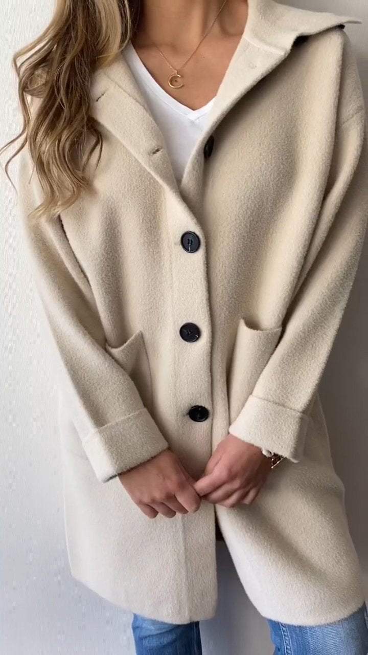 Women's Lapel Single-breasted Woolen Coat
