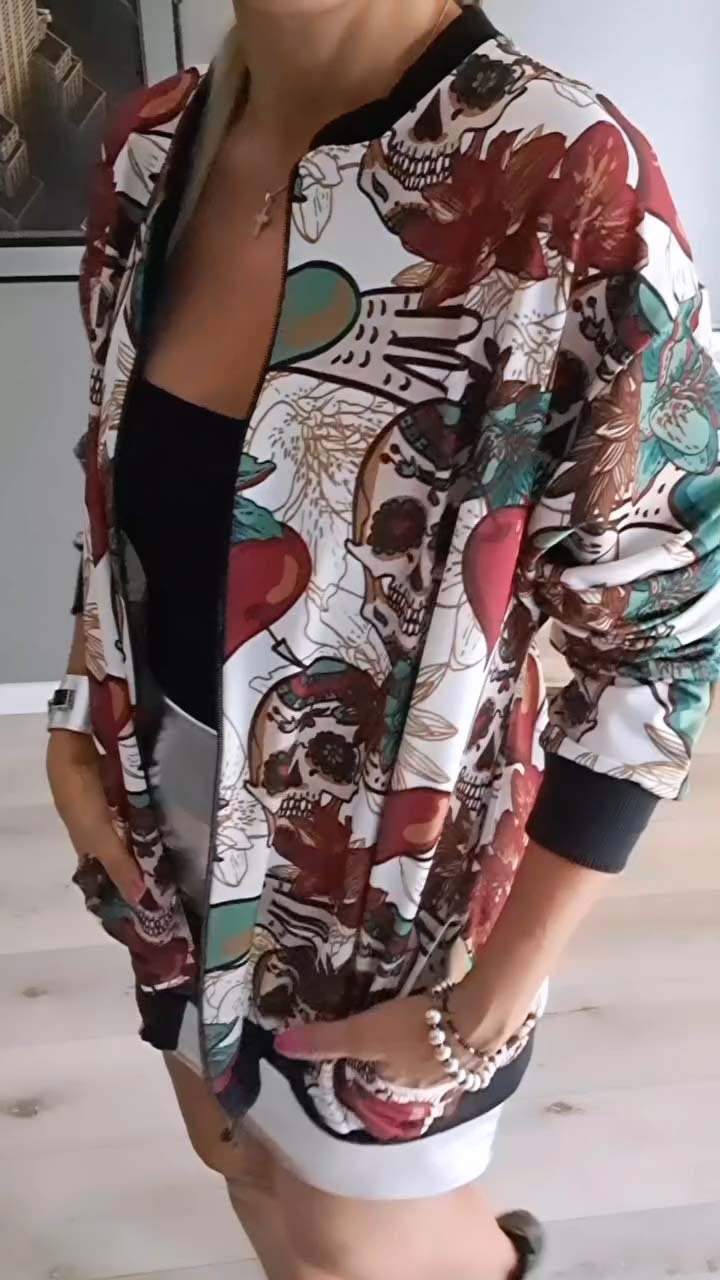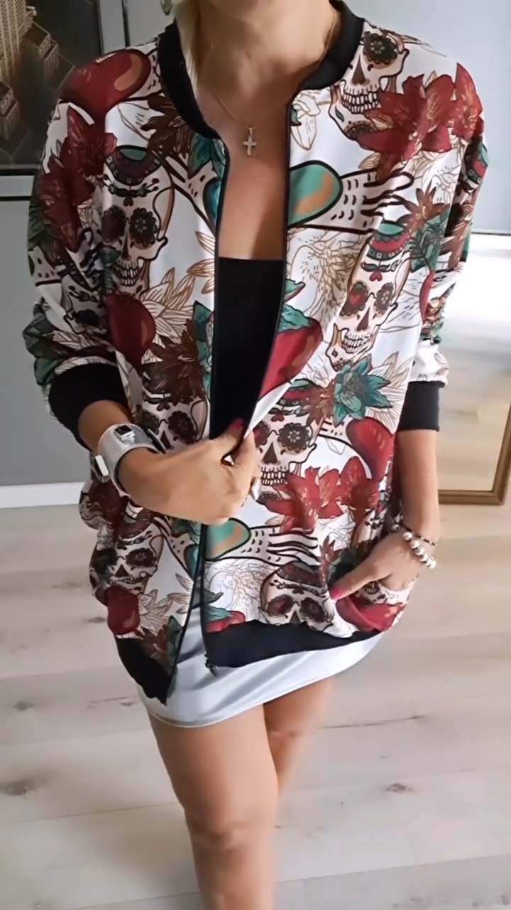 Women's Halloween Casual Skull Print Jacket