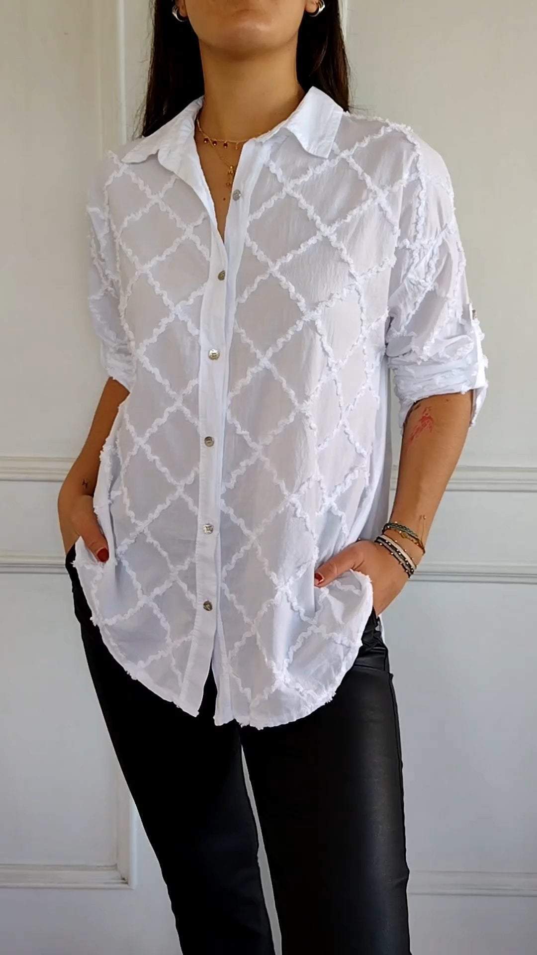 Women's Lapel Mid-sleeve Three-dimensional Diamond Casual Top