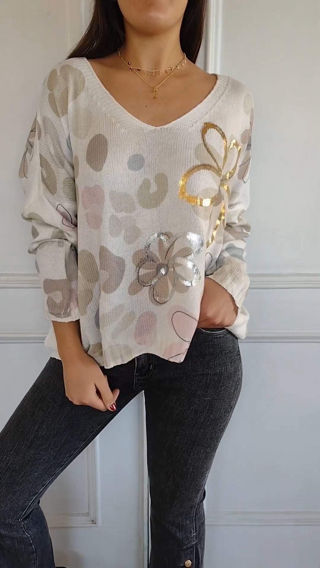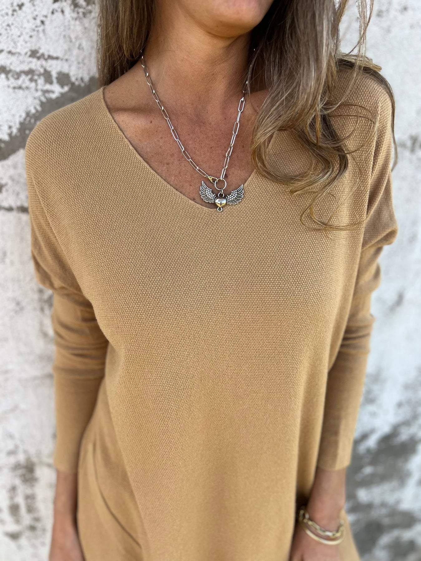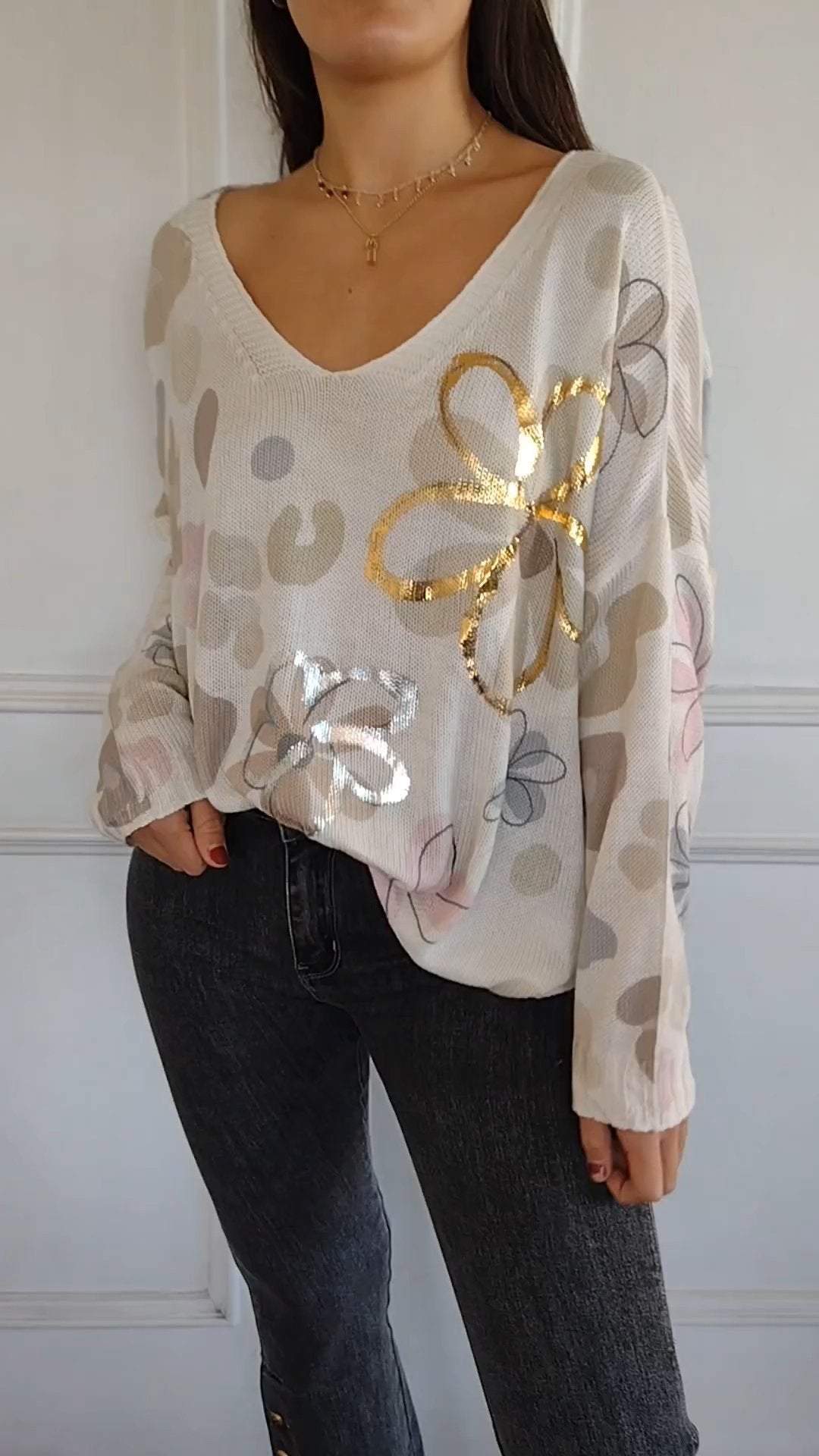 Women's V-neck Long-sleeved Gold-stamped Casual Top