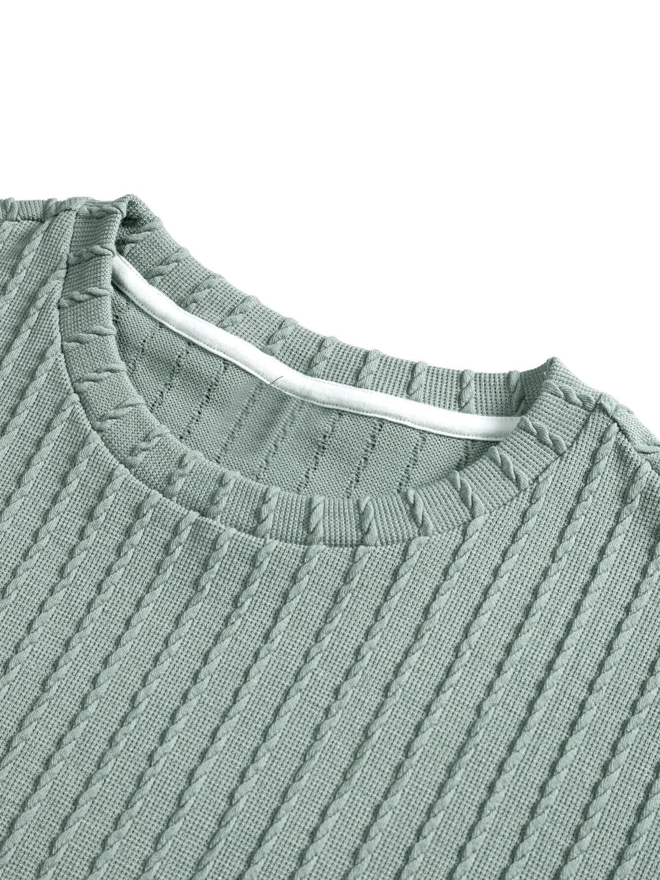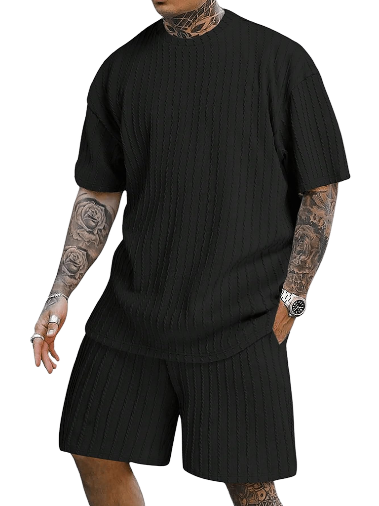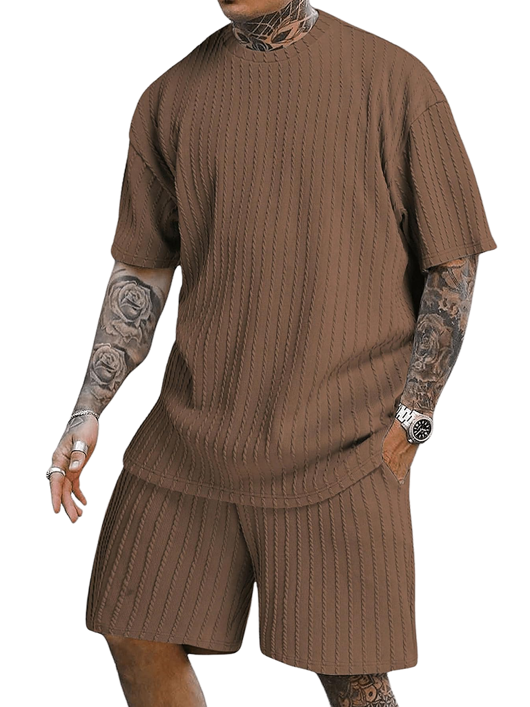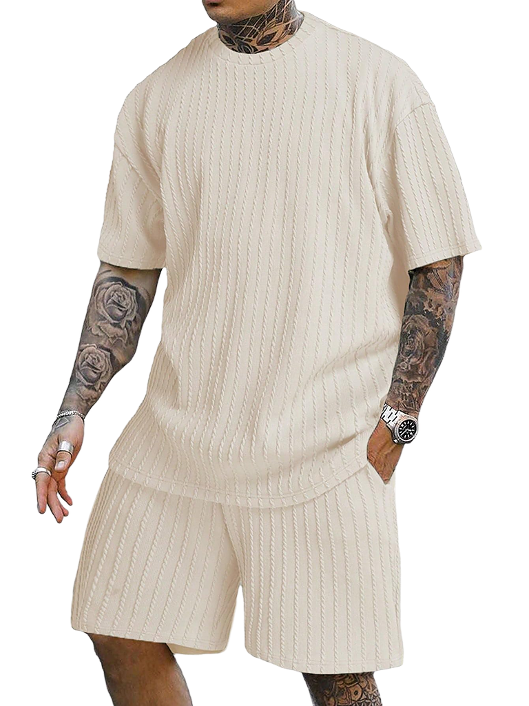 Men's Casual Textured Printed Short Sleeve Tee & Drawstring Waist Shorts Set