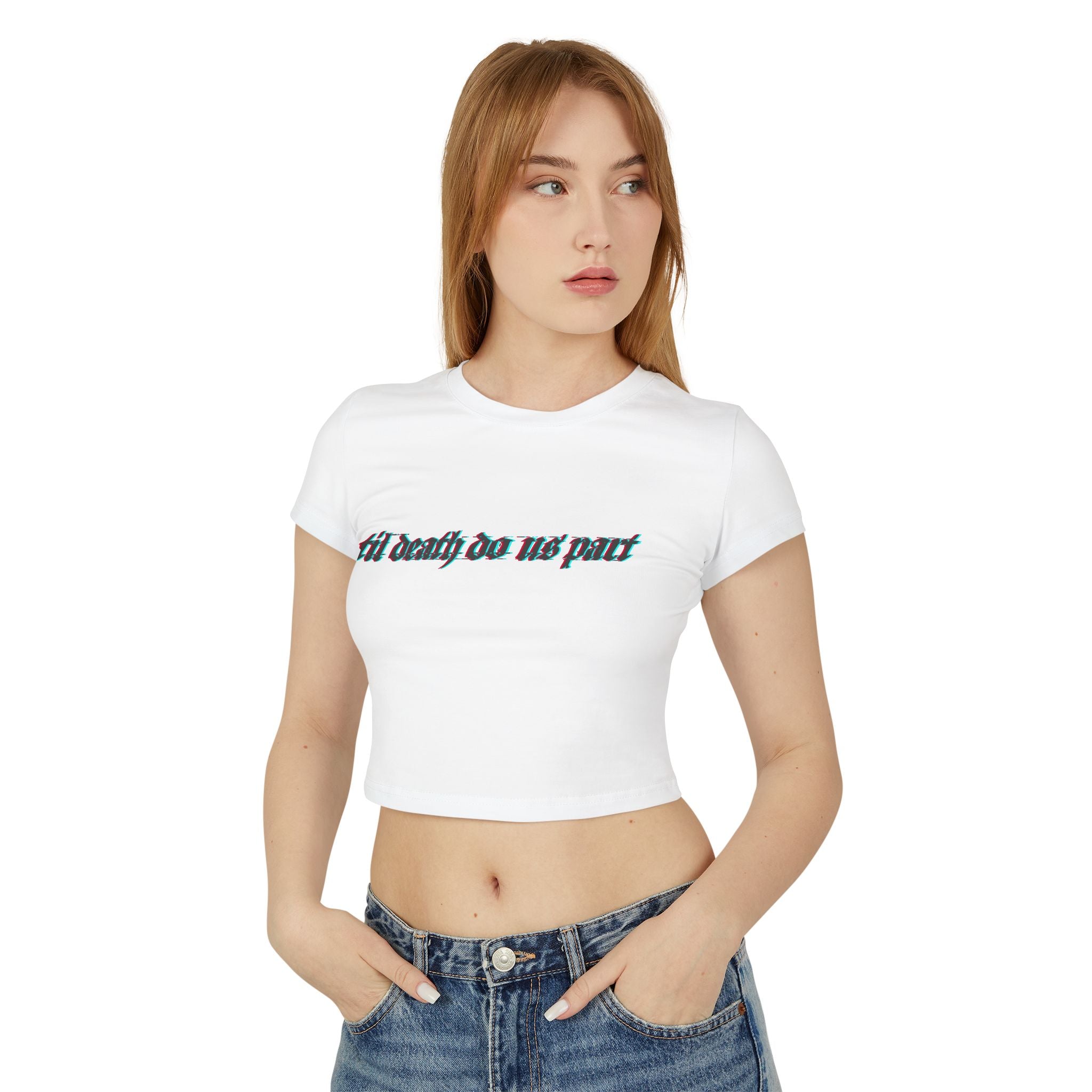 Fitted, cropped, and cursed just right — this baby tee features a glitched Grim Reaper for the girls who ghost before they get ghosted.