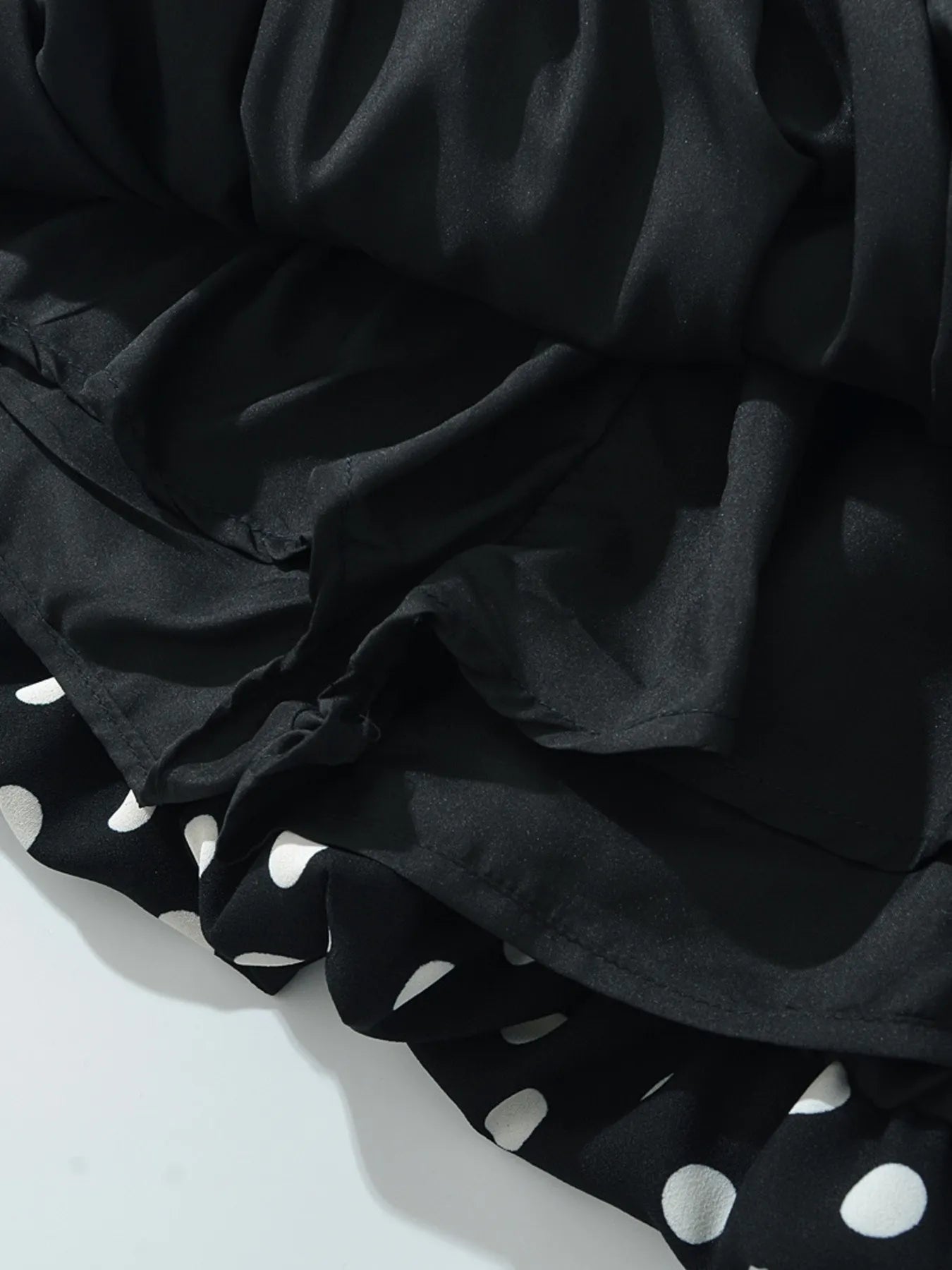 Dark, daring, and deadly sweet. Polka dot one-shoulder halter with a matching mini skirt, made for the vengeful ex who owns the night.