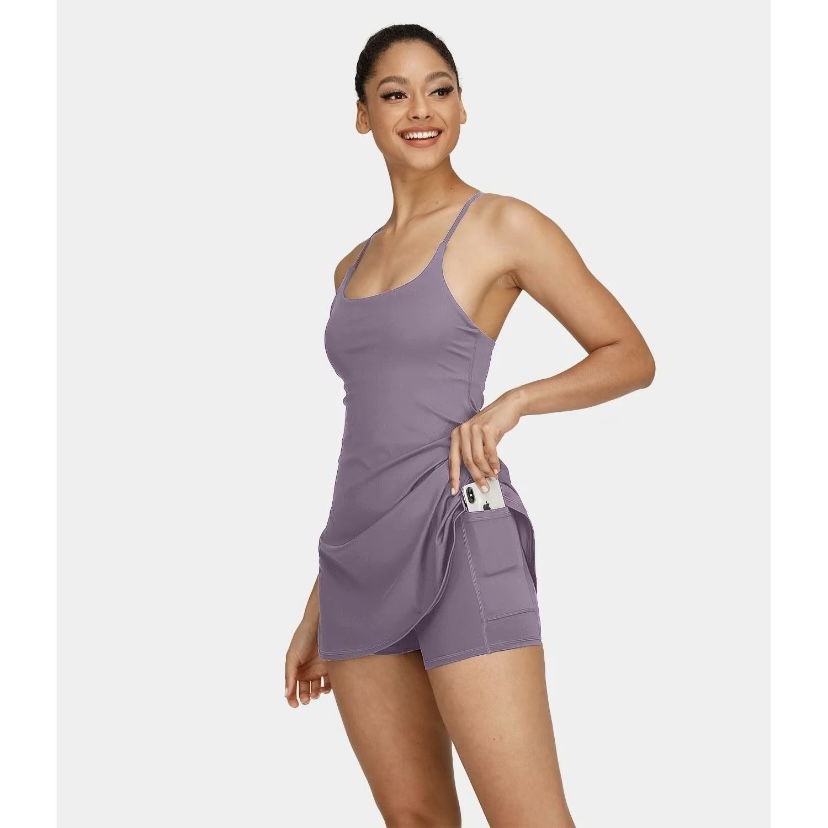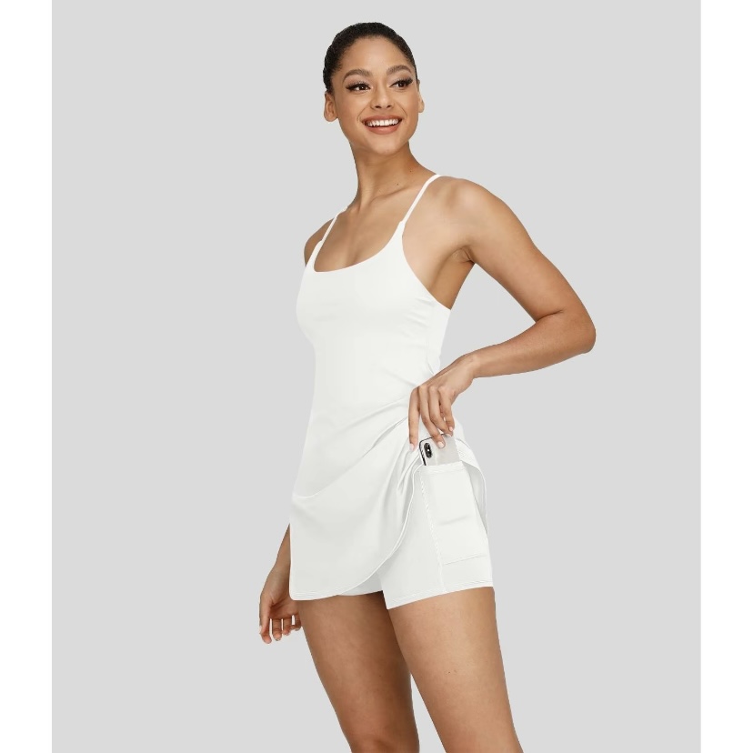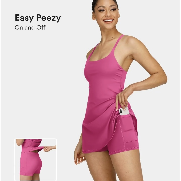 Built-in shorts with open back waistband for easy peezy bathroom breaks.